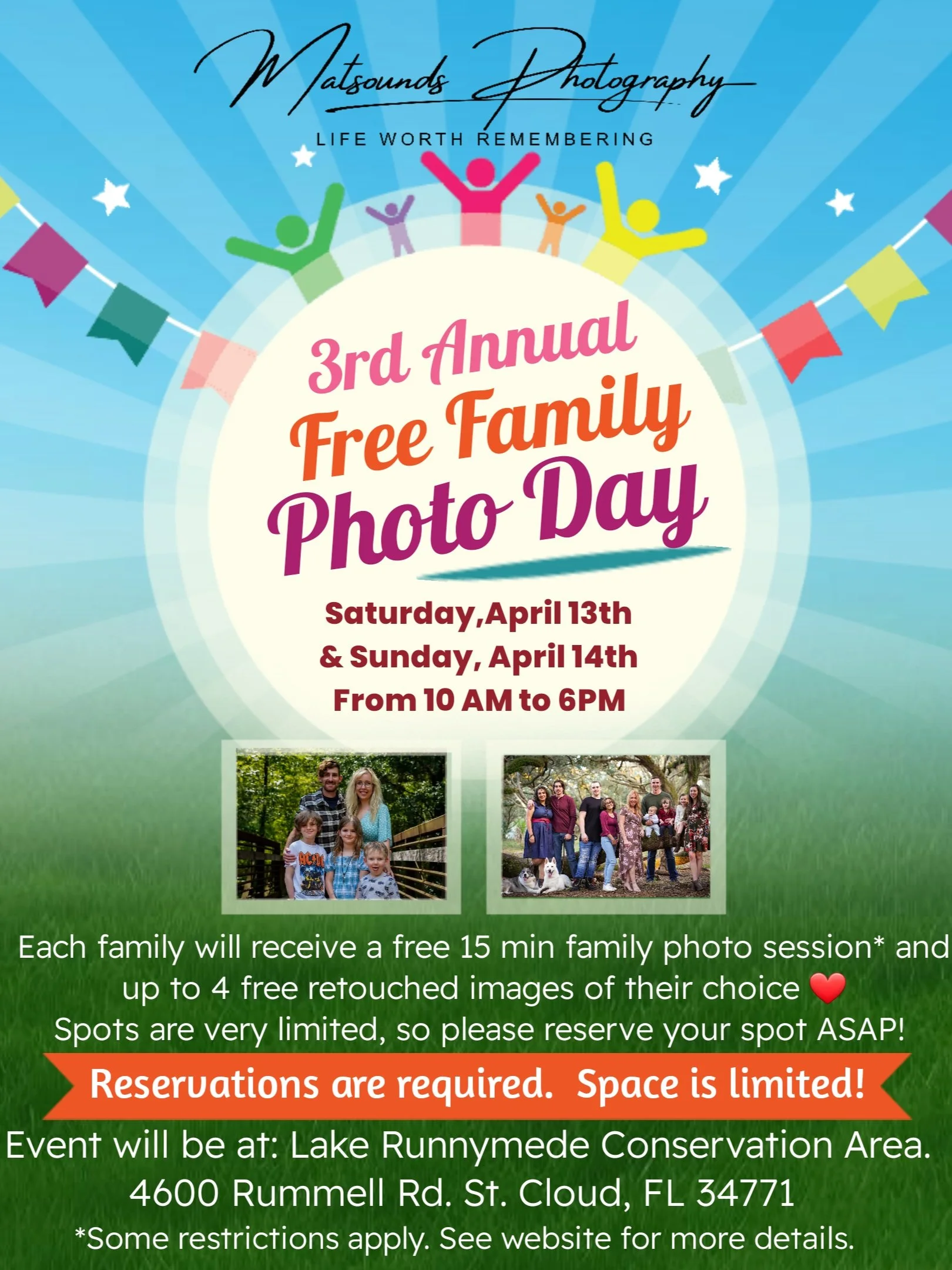Come and join us for our 3rd Annual Free Family Photo Day!